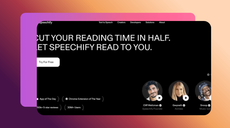 Speechify generates fast, smooth, and naturally appealing narrations, making it perfect for creators who want to produce video content quickly without sacrificing narration quality or fluency.