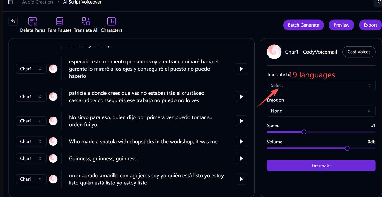 There are 19 languages to choose from, and you can click on Batch Synthesis to improve efficiency!