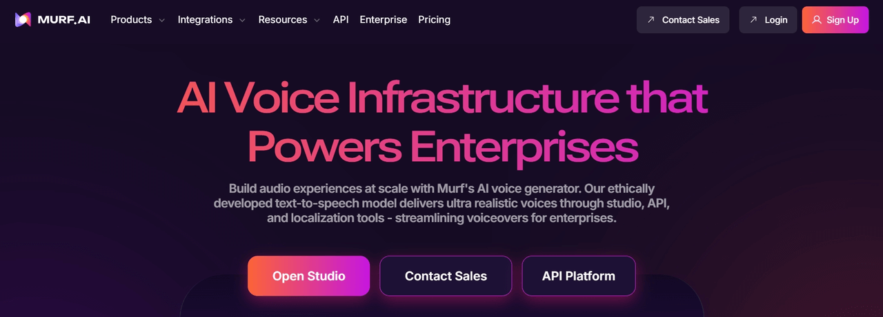 作为领先的 AI 语音生成器,Murf AI 已成为面向专业内容创作者的综合性文本转语音转换器。该平台结合了先进的 AI 语音合成技术与直观的界面,使其成为寻求高质量配音的企业的绝佳选择。
