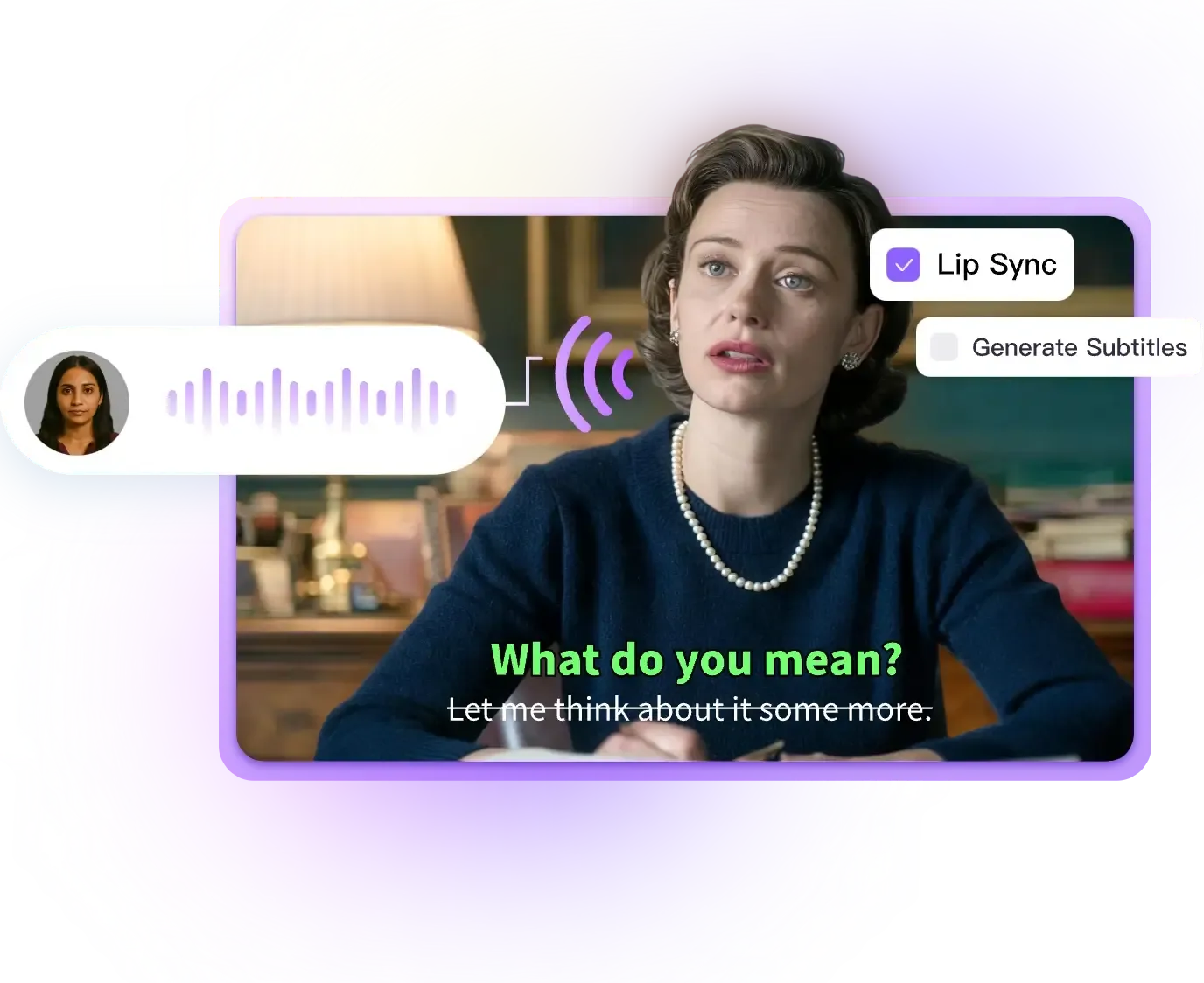 自动对齐唇形与人物台词,支持调整字幕内容和样式,
